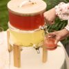 – Double drink dispenser with stand – These dual dispensers are made from durable clear acrylic, making them perfect for outdoor drink stations. A bamboo lid protects your drinks, while the gold spigots make it easy to fill up your glass.