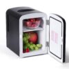 The Sleek and highly functional Uber Chill Personal Mini Fridge/cooler is capable of housing up to six 12 ounce cans of four 16.9 ounce bottles of your favorite beverage. Utilizing state of the art and environmentally friendly thermo-electric peltier technology, this mini fridge is capable of cooling or warming the contents within a reasonable amount of time, making it convenient in almost any occasion. In addition to this, the portable unit comes with both standard home and car power cables for ultimate portability. This is a great mini fridge for the bedroom, this small refrigerator is great as a dorm fridge, or a cubicle mini fridge.