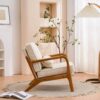UBesGoo Modern Arm Chair Linen Fabric Upholstered Comfy Reading Accent Chair with Solid Wood Frame Beige