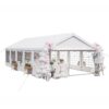 Make your next outdoor gathering unforgettable with this spacious 16×32 ft heavy-duty party tent. It’s ideal for everything from elegant weddings and banquets to casual BBQs and backyard parties. Built with strong galvanized steel and UV-resistant fabric, it offers dependable shelter and features a white design. Plus, with removable sidewalls and PVC windows, you can easily tailor the space for any event, come rain or shine.