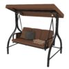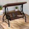Uforic 3-Seat Outdoor Porch Swing with Adjustable Canopy, Cushions and Pillow for Garden(Brown)