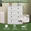 Uforic 5 Drawers Wood Dresser for Bedroom,Farmhouse Rustic Tall Chest of Drawers,with Power Outlets