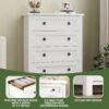 This versatile white storage cabinet, topped with a warm walnut finish, effortlessly blends into modern or traditional decor. Its 5 spacious drawers and sleek silhouette optimize organization for home offices, bedrooms, or guest rooms, while elegant black square knobs and patterned drawer fronts add refined detailing. Practicality meets innovation with an integrated 6.5ft UL-certified power strip (2 outlets + 2 USB ports), keeping devices charged and clutter-free. Built to last, the 18mm reinforced particleboard structure and anti-tip iron legs ensure stability (55lbs/shelf capacity), backed by a 90-day hassle-free return policy and 2-year extended warranty option. Detailed assembly guides with screw-specific diagrams guarantee stress-free setup, completing a storage solution that marries design intelligence with everyday convenience.