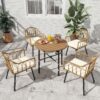 Uforic 5 Pieces Outdoor Patio Dining Table Set, 4 Rattan Wicker Dining Chair and ROUND Dining Table with Umbrella Hole for Garden, Lawn,Patios, Backyard