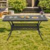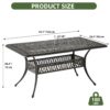 – Spacious Dining Surface : With a length of 59”, this table provides ample space for dining and entertaining. The intricate cast aluminum design adds elegance to any outdoor setting.