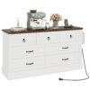 Uforic 7-Drawer Double Dresser with Power Outlets, Horizontal Wood Chest of Drawer, White