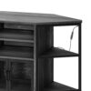Maximize space usage with our space-saving Corner TV Stand. Its sturdy wooden panels and iron frame ensure durability and stability, accommodating TVs up to 55 inches. Customize storage space with the movable partition and utilize the open shelves for versatile storage needs. The magnetic iron doors offer secure and effortless operation. Enjoy the convenience of the built-in power outlet for various equipment.