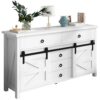 Uforic Farmhouse 7 Drawer Dressers For Bedroom White With 2 Sliding Barn Doors Coffee Bar Cabinet with Storage Drawer Wood Sideboard