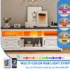 Elevate your living room with our rustic farmhouse TV stand designed for TVs up to 75 inches. This large entertainment center features a stylish black and white finish that complements various decor styles, adding a touch of sophistication to your space. Equipped with LED lights, this TV stand creates a warm and inviting ambiance in your living room, perfect for cozy movie nights or relaxing evenings. The integrated power outlet provides convenient connectivity for your electronic devices, making it easy to set up your entertainment system.