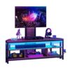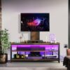 Uforic TV Stand Mount with Power Outlet, Swivel Entertainment Center with LED Lights for TVs up to 70 inches, Height Adjustable, Brown