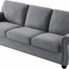 1.Luxurious Velvet Upholstery – Soft, plush fabric adds elegance and comfort to your living space. 2.Spacious Seating for Three – Offers ample room for family and guests, ideal for lounging or gatherings. 3.Exceptional Comfort – High-density foam cushions and loose back cushions for personalized support. 4.Mid-Century Modern Design – Solid wood turned legs and nailhead trim for a retro-inspired, stylish look. 5.Stylish Finish – Black sofa with a sophisticated design, blending seamlessly with both modern and classic interiors.