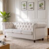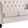The perfect piece to reflect your regal tastes, this Chesterfield Loveseat anchors your seating ensemble in timeless appeal. Crafted from the wood frame, this dapper design strikes an updated, clean-lined silhouette with tight pleated rolled arms and wood round tapered feet. Crushed velvet upholstery brings out this sofa’s glamorous side, while exquisite details including high-density foam fill with spring support, piped seat cushions, and a button-tufted backrest elevates the design. glamorous side, while exquisite details including high-density foam fill with spring support, piped seat cushions, and a button-tufted backrest elevates the design.