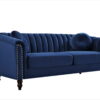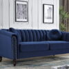 Beautifully styled and consciously crafted using materials. Present your home in modern luxury with a centerpiece sofa that exudes a glamorous vibe at every angle. This chesterfield-inspired sofa is the ideal addition to any living room with its classic design and traditional elements such as scrolled arms, turned legs, and nailhead accents. Upgraded with a sleek,modern touch of channel tufting, this sofa brings you an undeniably elegant touch to your interior space. Featuring soft velvet upholstery, this sofa stands as a streamlined statement piece that can change the whole flow of your living room. Velvet fabric upholstery imparts timeless style, while high-density foam creates luxuriously comfortable seating. Complete your living room decor with these chic seating options.