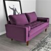 The classic design of the sofa,Mid-century style gives this wood frame Velvet Tufted sofa has a distinctive look that elevates your well-curated collection. It is button tufted details add a refined touch to any space while its streamlined silhouette and square arms fuse together to make a modern look. It features the button tufted seat and back cushion and finished wood legs. Two bolster pillows are included.