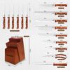 Designed for discerning chefs, the VAVSEA 16 piece kitchen knife set features essential kitchen tools like chef, bread, and santoku knives for precision cutting. Enjoy unmatched sharpness and comfort with hand-polished blades and ergonomic wooden handles. With a decade of blade craftsmanship expertise, VAVSEA knife block set guarantees superior quality and offers a 12-month warranty. Whether as a gift or for personal use, elevate your cooking experience with this versatile and stylish kitchen knife set.