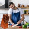 Designed for discerning chefs, the VAVSEA 16 piece kitchen knife set features essential kitchen tools like chef, bread, and santoku knives for precision cutting. Enjoy unmatched sharpness and comfort with hand-polished blades and ergonomic wooden handles. With a decade of blade craftsmanship expertise, VAVSEA knife block set guarantees superior quality and offers a 12-month warranty. Whether as a gift or for personal use, elevate your cooking experience with this versatile and stylish kitchen knife set.