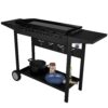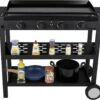 Vebreda 4-Burner 30″ Griddle Propane Gas Grill, Black. 4 control knobs allow you to adjust the temperature of different heating zones (preservation, low, medium, high). 2 side table and bottom shelf offer sufficient storage space for you. It s ideal for cooking eggs, pancakes, bacon, steak, potatoes and other grilled food. You can use it in patio, garden, backyard, etc.