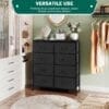 Vesteel 8 Drawers Dresser for Bedroom, Double Dresser Tall Storage Tower with Fabric Bins, Chest of Drawers for Closet, Living Room, Hallway, Black