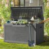 – THOUGHTFUL DESIGN: The deck box lid has two hydraulic levers that gently open and close to prevent hand trapping. The lockable lid keeps your belongings safe.