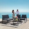 Vineego 4 Pieces Patio Conversation Sets PE Rattan Chairs with Loveseat and Table,Gray