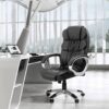 Vineego Leather High Back Office Chair Ergonomic Executive Office Chair Swivel Computer Desk Chair Lumbar Support Soft Cushioned Padded Arms
