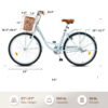 The design of this adult cruiser bike draws upon the classic step through bikes, creating a unique take on the everyday beach & city cruiser bike. Every detail of this hybrid bike is geared towards your convenience and safety: Our 24 inch bike goes for a low sloping top tube and chain fender so you can ride in any clothes and get on and off in no time; front & rear v-brakes provide powerful control even on slopes; the carbon steel frame, single speed ATA cassette, and durable rubber tires provide exceptional stability and sure handling that last for years, and the bell and 3 reflectors for increased visibility and safety day and night; the reinforced rear rack and front basket make your errand-runs or grocery shopping trips easy as pie. Thanks to the adjustable handlebars and seat, you can always enjoy biking in a comfortable upright position.