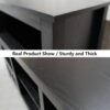 – Built to Last Made of premium P2 class particle board coated with an antique finish with vivid wood grain, this entertainment center is of great stability and durability, able to hold up to 200lbs. lt has 4 wooden support legs plus two extra support legs under the bottom shelf, making it quite stable and durable. This tv stand is built to long-lasting service.