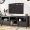 Vivvoo 70 Farmhouse Black TV Stand for TVs up to 80 Home Cabinet with Drawers Easy Assembly