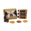 – Premium popping set in gold glitter gift box: 18-oz. Big & Yellow kernels, 18-oz. Tender & White kernels, 3-oz. Classic Blend Popping Oil & 1-oz. Movie Theater Popcorn Seasoning