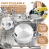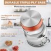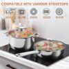 – FAST & EVEN HEAT – Bottom of pots and pans consists of three layers, Magnetic 18/0 stainless steel exterior makes it compatible with a variety of stoves, including gas, electric, ceramic, induction, halogen, Pure aluminum core is great for fast, stable and even heat distribution to save energy, Food-grade 18/0 stainless steel interior ensures safety and health