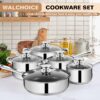 Walchoice 13-Piece Stainless Steel Cookware Set, Kitchen Pots and Pans Set with Glass Lid for Cooking, Induction and Dishwasher Safe, Silver