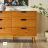 Walker Edison 6 Drawer Solid Wood Dresser with Cut Out Handles, Caramel Brown