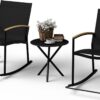 Walsunny 3 Pieces Patio Set Outdoor Patio Furniture Sets Modern Rocking Bistro Set Textilene Chair Conversation Sets Black
