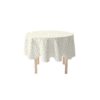 60 x 84 Water Repellent Rectangle Tablecloth with 2.5 center hole and zipper closure. Made Domestically, Polyester. Hemmed Edges. Seamless cloth. Machine Washable with Light Iron touch up as needed. Will soften after each wash. Engineered to resist stain absorption. Perfect for all occasions!