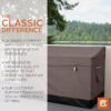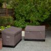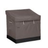 Easy to transport. Lightweight steel tubes. Simplified connection points allow for quick assembly. Ability to take apart the box when you don’t have a need for it. Weather proof. Solution-dyed, fade and water-resistant fabric. Weatherproof tarpaulin bottom limits water seeping in from the ground. Designed for your yard. Designer touches in the padded handles and straps. 85 gallon storage. Provides the perfect space to protect your pillows, blankets, accessories and equipment seasonally. Warranty: One year limited. Made from 100% woven polyester with laminated polyvinyl chloride, steel tubing and plastic frame connectors. Made in China. Assembly required. 32 in. L x 28 in. W x 30 in. H (13.91 lbs.). Instructions. Designed with the aesthetics of your home in mind, Ravenna deck boxes are a stylish, versatile, and weather-ready addition to your outdoor living space. The warm brown-grey is a sophisticated neutral color equally at home against the backdrop of your house or garden. Coordinated natural colors adorn the handles and webbing that allows you to secure the lid. Made to adapt to your needs, the powder coated steel frame is lightweight, making repositioning these boxes easier than heavier resin models, and can be taken apart if you don’t need the box outdoors throughout the year. Our design team constructed the box with simplified connection points, so assembly is stress-free. The deck box is not a toy, please do not allow children and/or pets to play within the box. The rich, yet reserved colors coordinate with the rest of the Ravenna Outdoor Living Collection. When you buy a Classic Accessories grill or patio furniture cover you are not just getting a cover; you’re also purchasing peace of mind. Not only will your grill and patio furniture be protected from the elements, but you’ll be protected with the easiest warranty in the industry. If your product fails within the warranty period, look for at classicaccessories.com and take advantage of our hassle-free warranty program supported by our US-based customer service team. Please take caution; some materials, finishes, sealants or coatings used for sealed patios and decking may react with the PVC bottom. This deck box is not waterproof. Items stored in it may come into contact with moisture. Not recommended for long-term cushion or soft good storage.