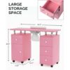 - The manicure table is designed with 8 rolling wheels, so you can easily move it from one place to another.