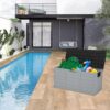 – This Garden Plastic Storage Deck Box is the large capacity can hold a large number of items.