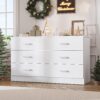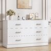 Winkalon 6 Drawer White Double Dresser, Wood Storage Cabinet with Easy Pull Out Handles for Living Room,Chest of Drawers for Bedroom
