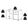 - Weight capacity; top 35lbs, shelf 25lbs, drawers 12lbs each, filing drawer 25lbs