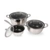 Wolfgang Puck 6-Piece Stainless Steel Pots and Pan Set; Scratch-Resistant Non-Stick Cookware, Clear Tempered-Glass Lids, Cool Touch Handles, Extra-Wide Rims for Easy Pouring