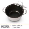 – COOL TOUCH HANDLES: Thanks to a unique hollow design, the stainless-steel handles stay cool to the touch while in use. Which is great, since each cookware piece has an aluminum-bonded base to amplify heat conductivity on all cook tops.