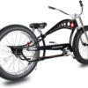 WonderWheels 26″ Stretch Cruiser Coaster Brake Triple Tree Fork, Handlebars Moon Bar, Alloy Polish Rims. 26×3.0 26H Black Tire – Black