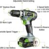 – What You Get – 1*20V Cordless Drill Driver, 1*20V Li-ion Batteries, 1* 2.4A Quick Charger, 10*2″Screwdriver bits, 6* twist drill bits
