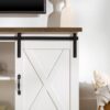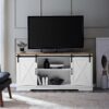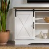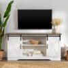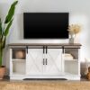 Woven Paths Farmhouse Sliding Barn Door TV Stand for TVs up to 65″, White/Reclaimed Barnwood: