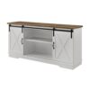 Woven Paths Farmhouse Sliding Barn Door TV Stand for TVs up to 65 , White/Reclaimed Barnwood