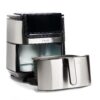 – Deluxe accessory kit includes a ceramic-coated divider for the cooking basket, 50 perforated parchment steaming papers, an 8-inch ceramic coated pizza pan, multi-purpose rack with 3 stainless steel skewers, cupcake silicone pan and dehydrator racks.