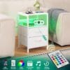 Yoobure Nightstand with Charging Station, LED Night Stand with Fabric Drawers and Storage Shelf for Bedroom, Small Nightstands Bedside Tables with USB Ports and Outlets,White