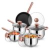 – Compatible with All Stovetops: Featuring a high magnetic conduction stainless steel base with an extended bottom design, our cookware set is suitable for all cooktops, including induction, and ensures even and quick heat distribution.