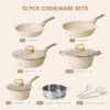 Younghome 12-Piece Nonstick Cooking Cookware Set, Pots and Pans, Beige Granite