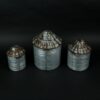 Embrace the timeless charm of rural aesthetics with this exquisite set of silo canisters, adding a delightful farmhouse touch to your home decor. Crafted from durable tin, these canisters feature an authentic antiqued metal roof that serves as a functional hinged lid, highlighting their rustic allure. The intricate ribbing and groove details meticulously mimic the design of traditional silos, enhancing their visual appeal. Arriving empty but brimming with character, these canisters offer endless possibilities for creative expression. Whether adorning your kitchen counter or bringing life to any room with live or artificial plants, these versatile containers invite you to experiment with various decorative accents. Their galvanized tin construction exudes vintage charm, effortlessly complementing country-inspired decor themes. Available in three sizes, each canister is thoughtfully designed. The small variant stands at 8 inches high with a 5.5-inch diameter, the medium canister measures 10.25 inches high and 6.75 inches in diameter, while the large canister impresses at 12 inches in height and 8.13 inches in diameter. Perfect for decorative purposes, this canister set encourages you to infuse your living space with the cozy ambiance of farmhouse living. Let the rustic elegance of these canisters transport you to a bygone era, where simplicity and warmth harmoniously coexist, turning your home into a haven of comfort and style. This product is an exclusive Zeckos design.